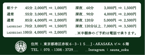 半額券配布のお知らせ 2026.01.09 HOME ニュース 半額券配布のお知らせ いつも当サウナをご利用いただきありがとうございます。 期間中、ご来店のお客様へ次回使える【半額券】をプレゼント! ととのいの余韻を、もう一度お得に。 是非この機会にご来店お待ちしております。 Post Share Hatena Line note LADIES DAYのご案内です! お知らせ お知らせ一覧はこちら 2026.01.15 謹賀新年 2026.01.15 営業時間変更のお知らせ 2026.01.09 LADIES DAYのご案内です! 2026.01.09 半額券配布のお知らせ